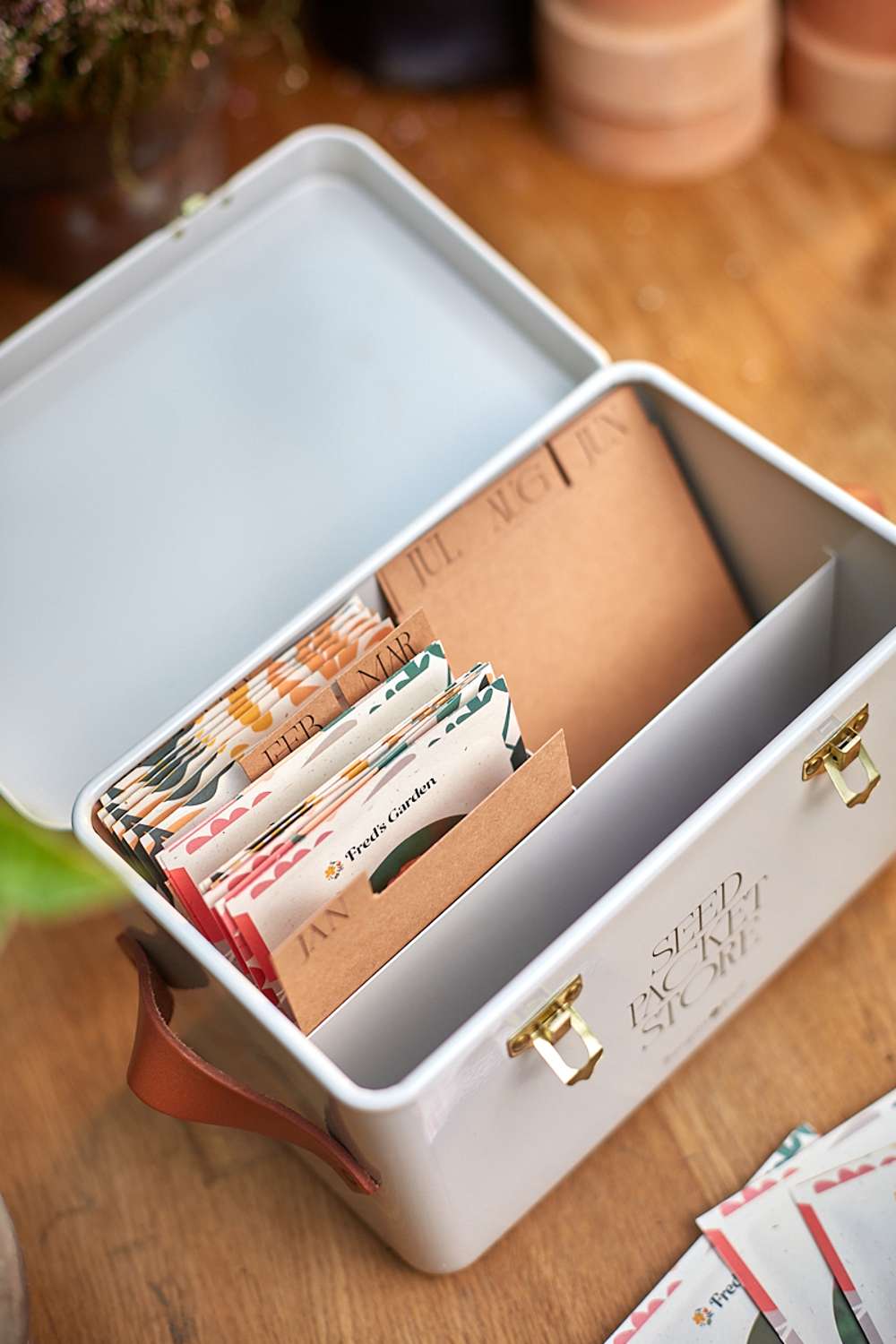 Denne smukt designede frøopbevaringsdåse er perfekt til at samle, opbevare og organisere dine frøposer.