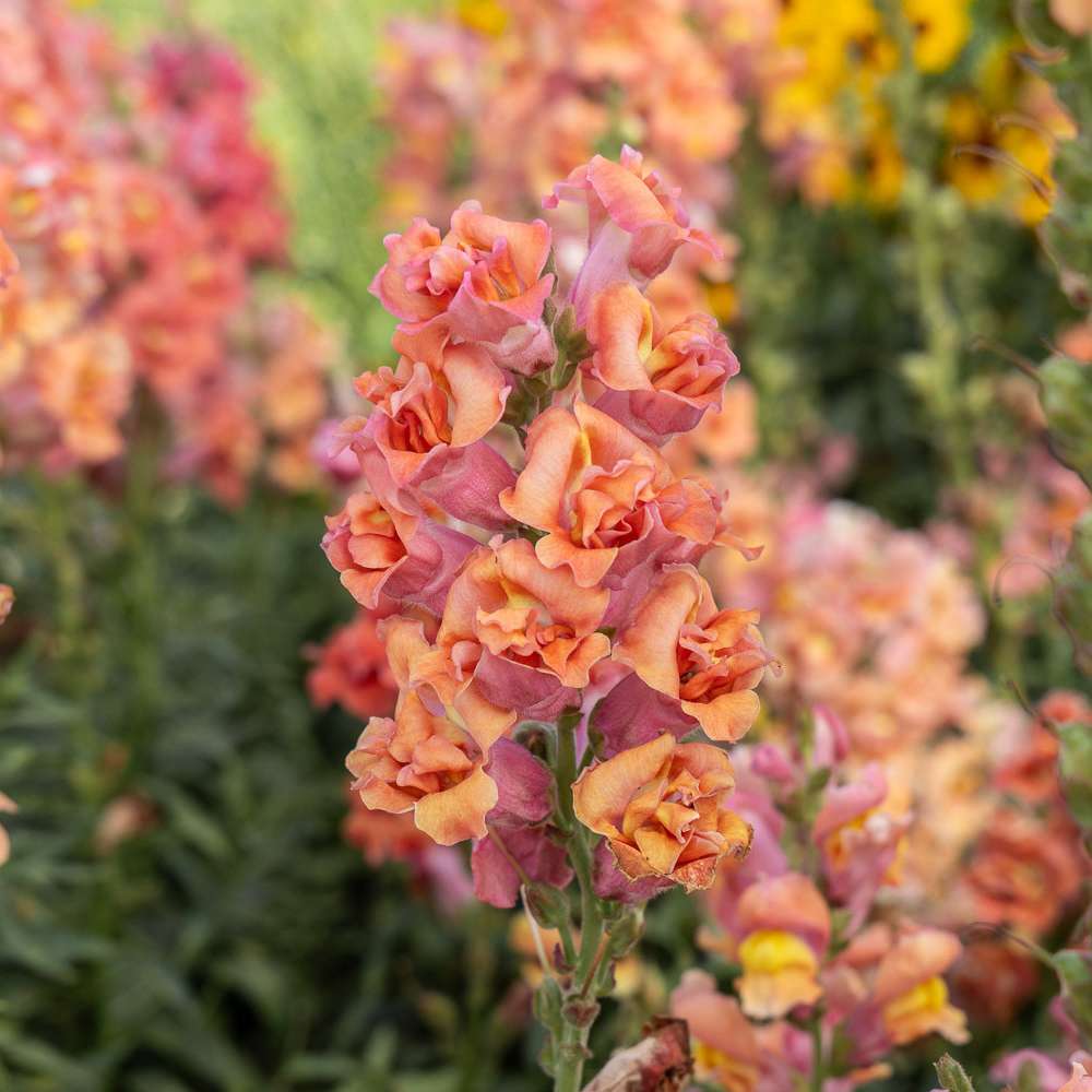 Smuk løvemund fra den elskede Madame Butterfly-serie i farverne fersken, rosa og bronze. Snapdragon har brug for lys for at spire, så frøene skal sås i overfladen og ikke dækkes med jord. Løvemund producerer mange blomster til haven, og jo flere du plukker, jo flere vil den producere.