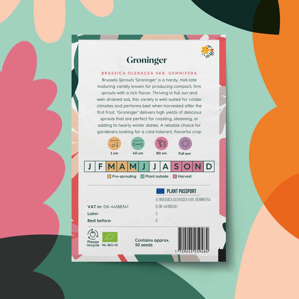 Rosenkål 'Groninger' er en hårdfør sort, der modner sent og er kendt for at producere kompakte, faste hoveder med en rig smag. Sorten trives i fuld sol og veldrænet jord, er velegnet til koldere klimaer og klarer sig bedst, når den høstes efter den første frost. 'Groninger' giver et stort udbytte af lækre hoveder, der er perfekte til ristning, dampning eller som tilbehør til kraftige vinterretter.