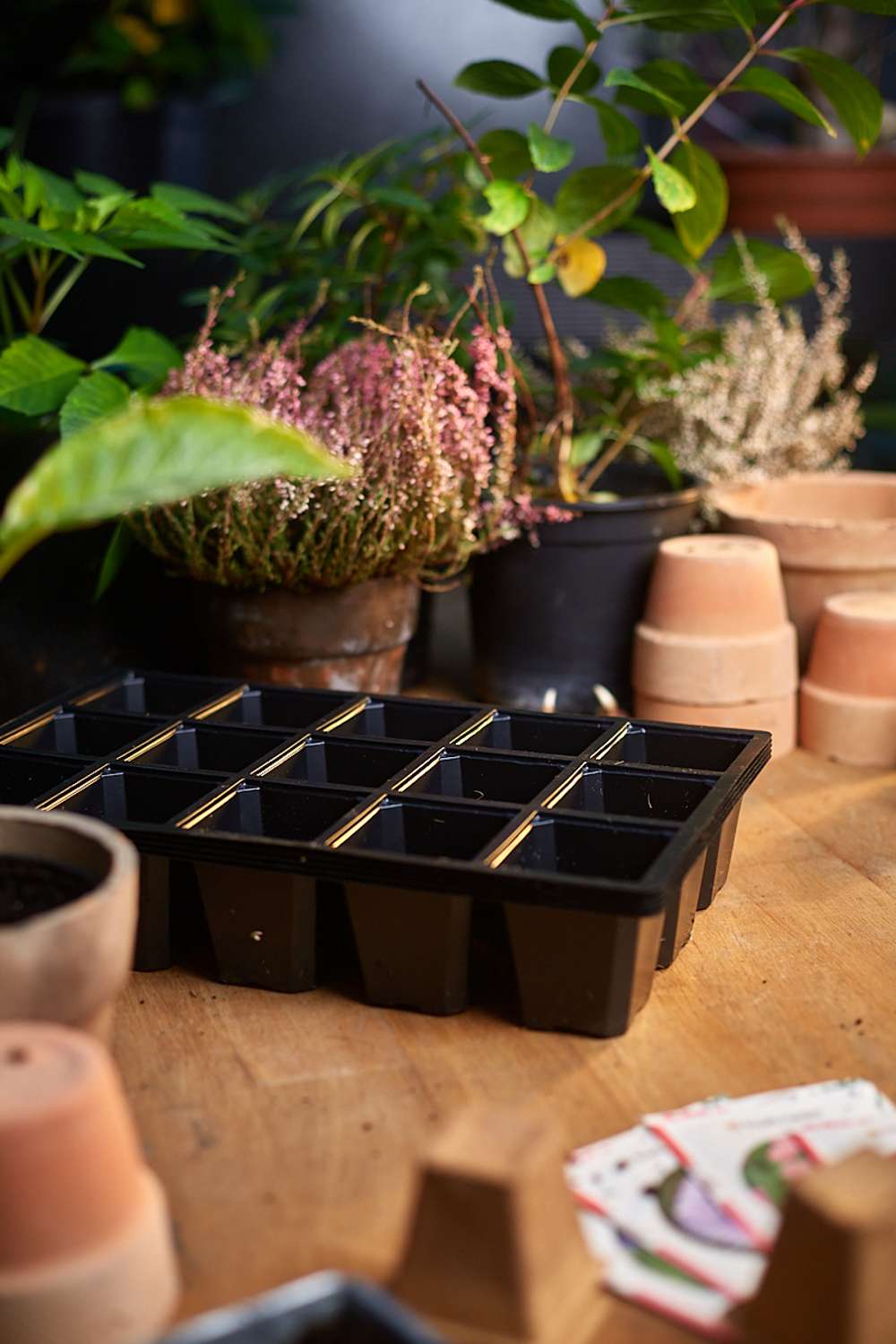 Blomsterverden sælger desuden en såbakke uden huller (varenr. G132G), som passer i størrelsen til disse bakker. Den kan bruges som underbakke, så du nemt kan vande dine planter nedefra og undgå vand på bord eller vindueskarm.