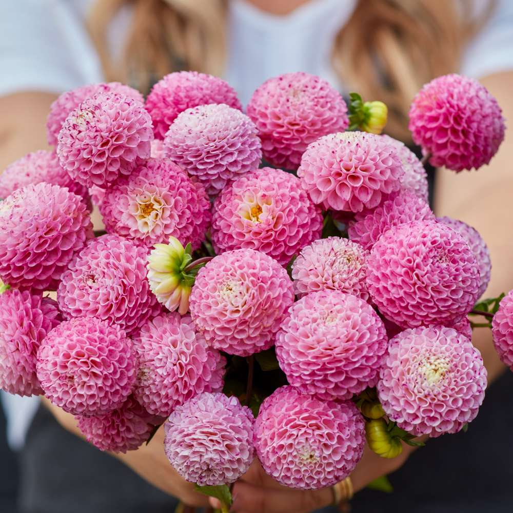 Dahlia 'Maaike' er en fin pompon dahlia, som folder sig ud i den skønneste lyserøde nuance. Blomsterhovederne er meget tætte og bliver 5-10 cm i diameter, mens planten når en højde på 80-100 cm. Den lyserøde farve blander sig flot med mange andre farver, så du kan med fordel blande den med andre sorter i havebedet. Prøv fx at sætte den sammen med gule, hvide eller røde farver og nyd det varierede farveflor hele sommeren.Brug den endelig som snitblomst. Planten vil belønne dig med mange flere blomster jo flere du plukker, så der vil være rigeligt til sommerens buketter og blomsterarrangementer.