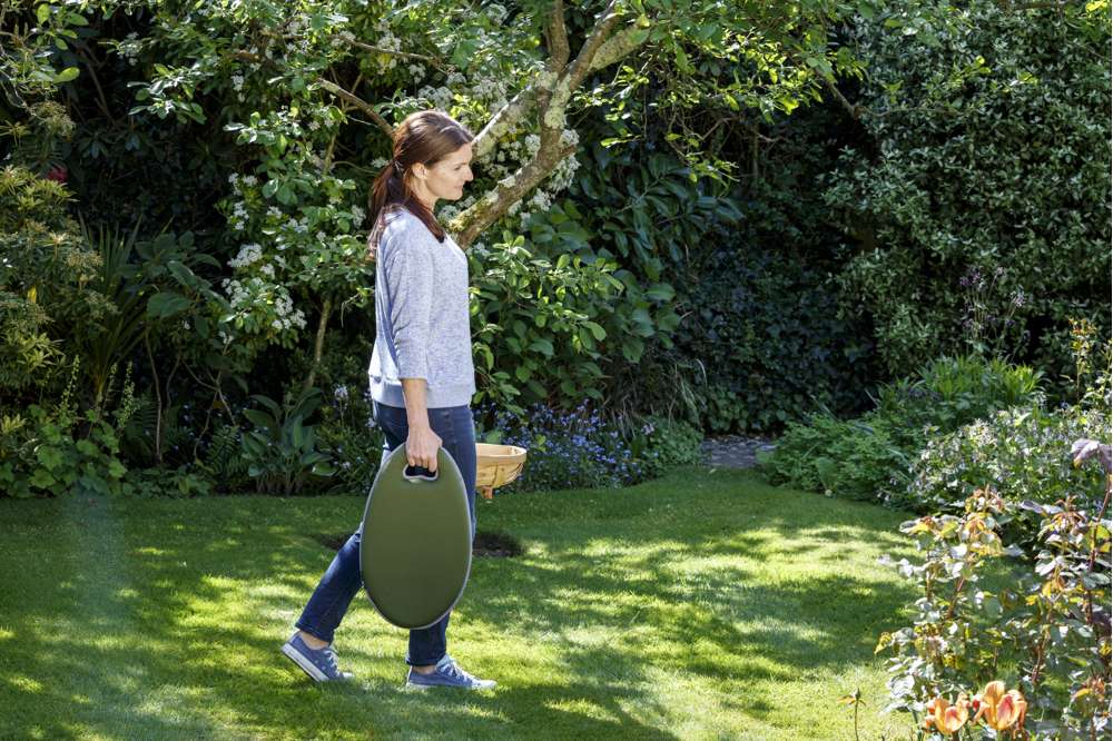 Med en generøs længde på 52 cm er der rigeligt plads til begge knæ, og det skridsikre bærehåndtag gør det nemt og behageligt at flytte puden med rundt i haven.