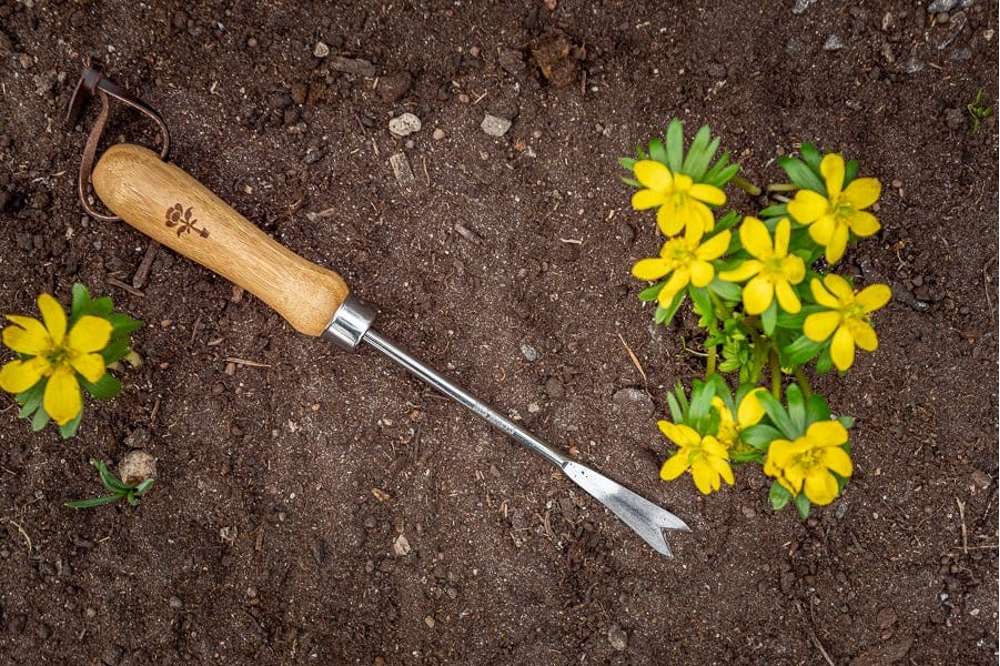Det brede, solide hoved med tre tænder glider let ned i jorden og giver god kontrol ved plantning af forårsløg, stauder og småplanter.