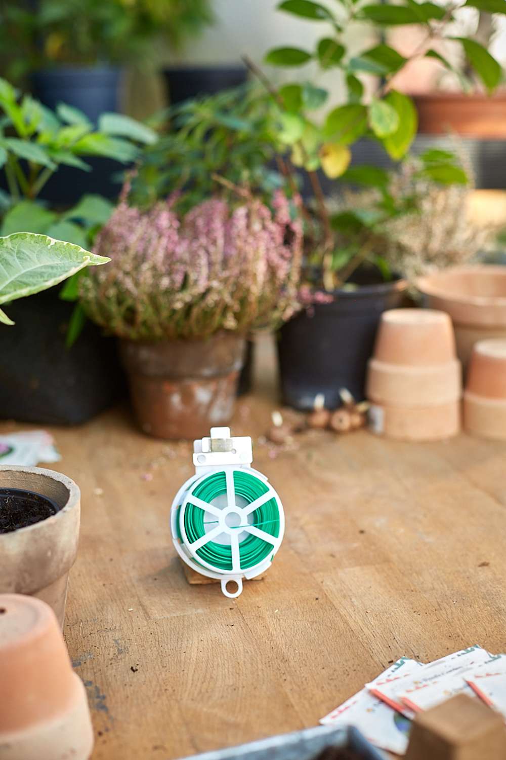 Båndet kan klippes til i den længde, der passer, og er ideelt til alt fra tomater, ærter og bønner til stauder, roser og andre haveplanter. En praktisk rulle at have ved hånden i drivhuset, køkkenhaven eller blandt krukkerne hele sæsonen.