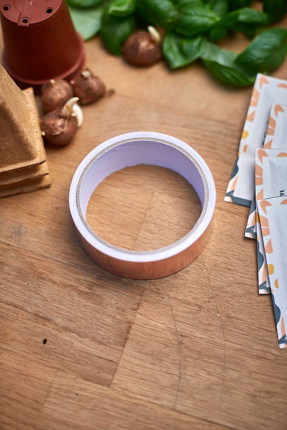 Båndet er let at klippe til og sætte fast på rene, tørre overflader. Det er ideelt til beskyttelse af sarte planter som salat, hosta, dahlia og andre sneglefavoritter, så du kan nyde en flottere og mere intakt have hele sæsonen.