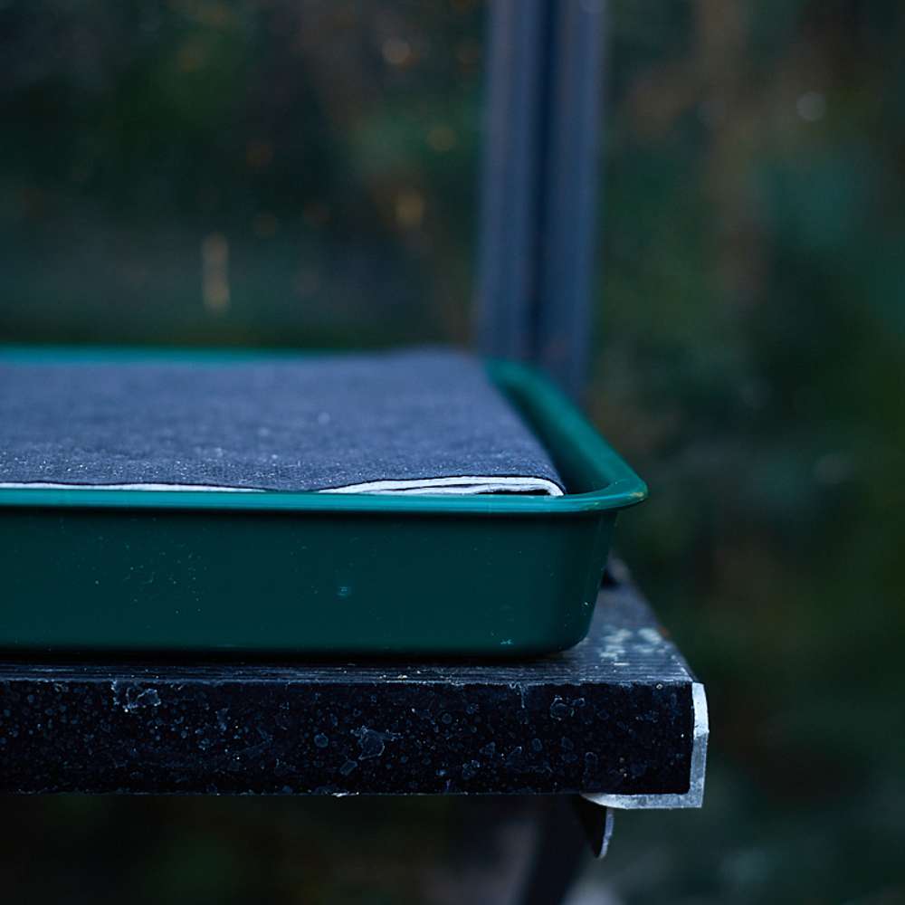 Vindueskarme kan tilbyde ideelle lysforhold for stueplanter, så denne selv-vandingsbakke vil være god til både bolig eller drivhus. Specielt egnet som et ferie vandingssystem. Enheden er udstyret med et reservoir bakke base, som indeholder en "opstyltet" indre platform, som er dækket med kapillarmåtte. Basisbakken indeholder et reservoir på 3,4 liter vand. Bakken er fremstillet af genbrugt polystyren.En rigtig god aflang bakke. God til vindueskarm, eller til drivhus.
