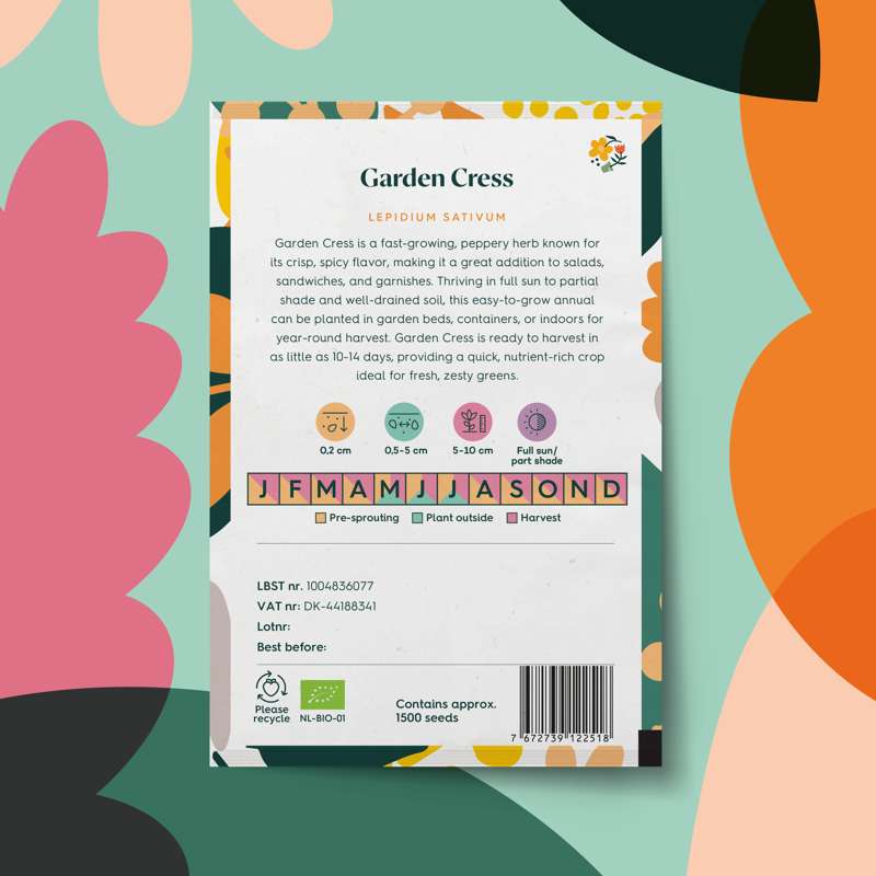 Havekarse er en hurtigtvoksende, pebret krydderurt, der er kendt for sin sprøde, krydrede smag. Den til en fantastisk tilføjelse til salater, sandwiches og pynt. Denne etårige plante, der er nem at dyrke, trives i fuld sol til halvskygge og i veldrænet jord og kan plantes i havens bede, i krukker eller indendørs, så man kan høste året rundt. Garden Cress er klar til høst på kun 10-14 dage og giver en hurtig, næringsrig afgrøde, der er ideel til frisk, pikant grønt.
