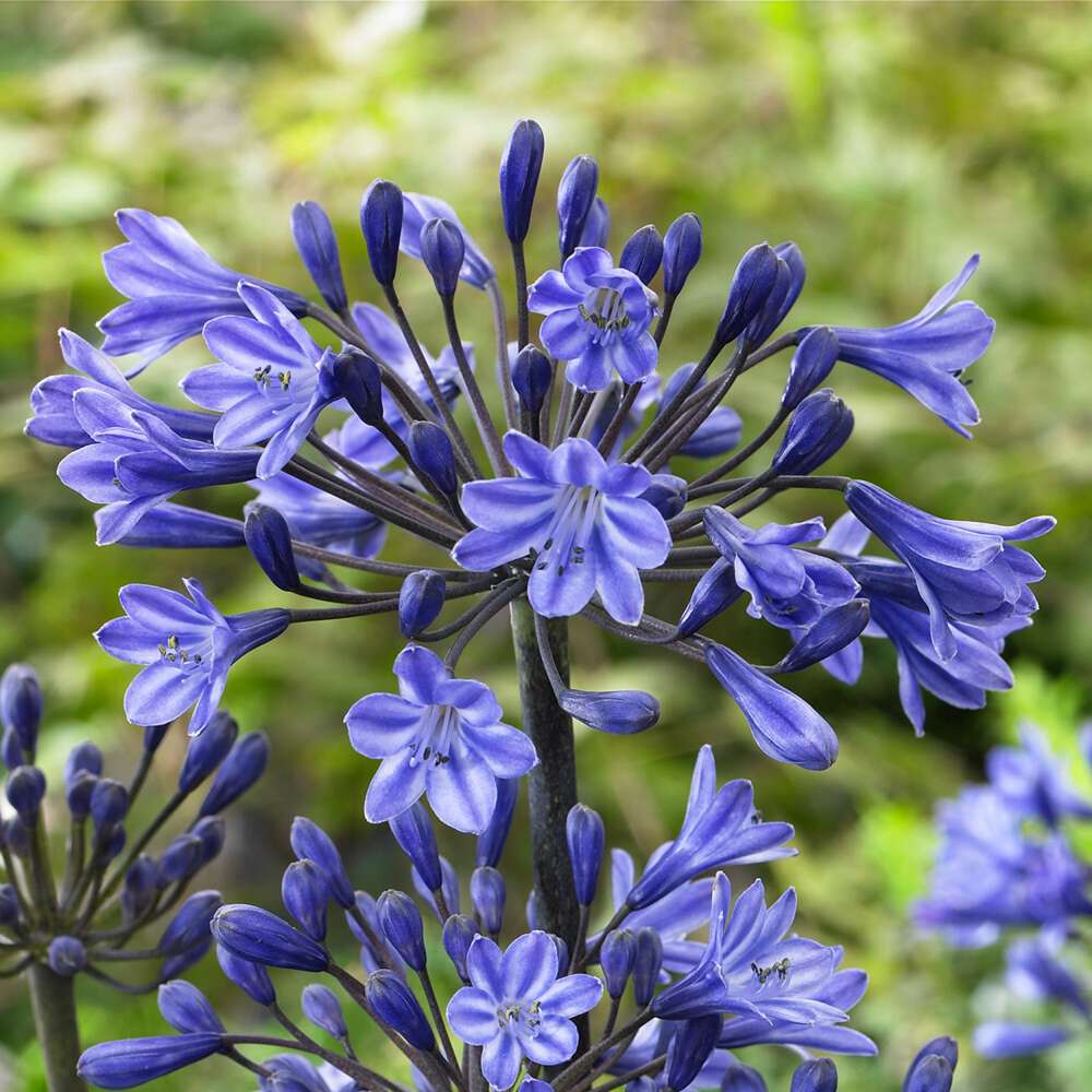Skærmlilje 'Black Buddhist' er en utroligt flot og fascinerende variant med dybt mørkeblå blomsterknopper, der åbner sig til mørklilla nuancer. De slanke stilke og dramatiske farver gør den til et eksklusivt valg til bede eller krukker. Den tilføjer et strejf af mystik og elegance og er perfekt som kontrast i bede eller buketter.