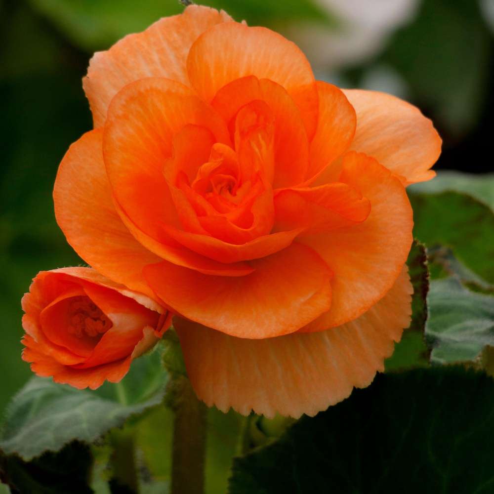 Begonia Dobbelt Orange er en iøjnefaldende og energisk sort, der pryder haven med sine store, fyldige blomster i varme orange nuancer. De dobbelte blomster har silkebløde kronblade, der tilfører et varmt og eksotisk præg til krukker, altankasser og blomsterbede. Blomstringen varer fra forsommer til efterår og skaber et vedvarende farvespil, som bringer liv og glæde til haven