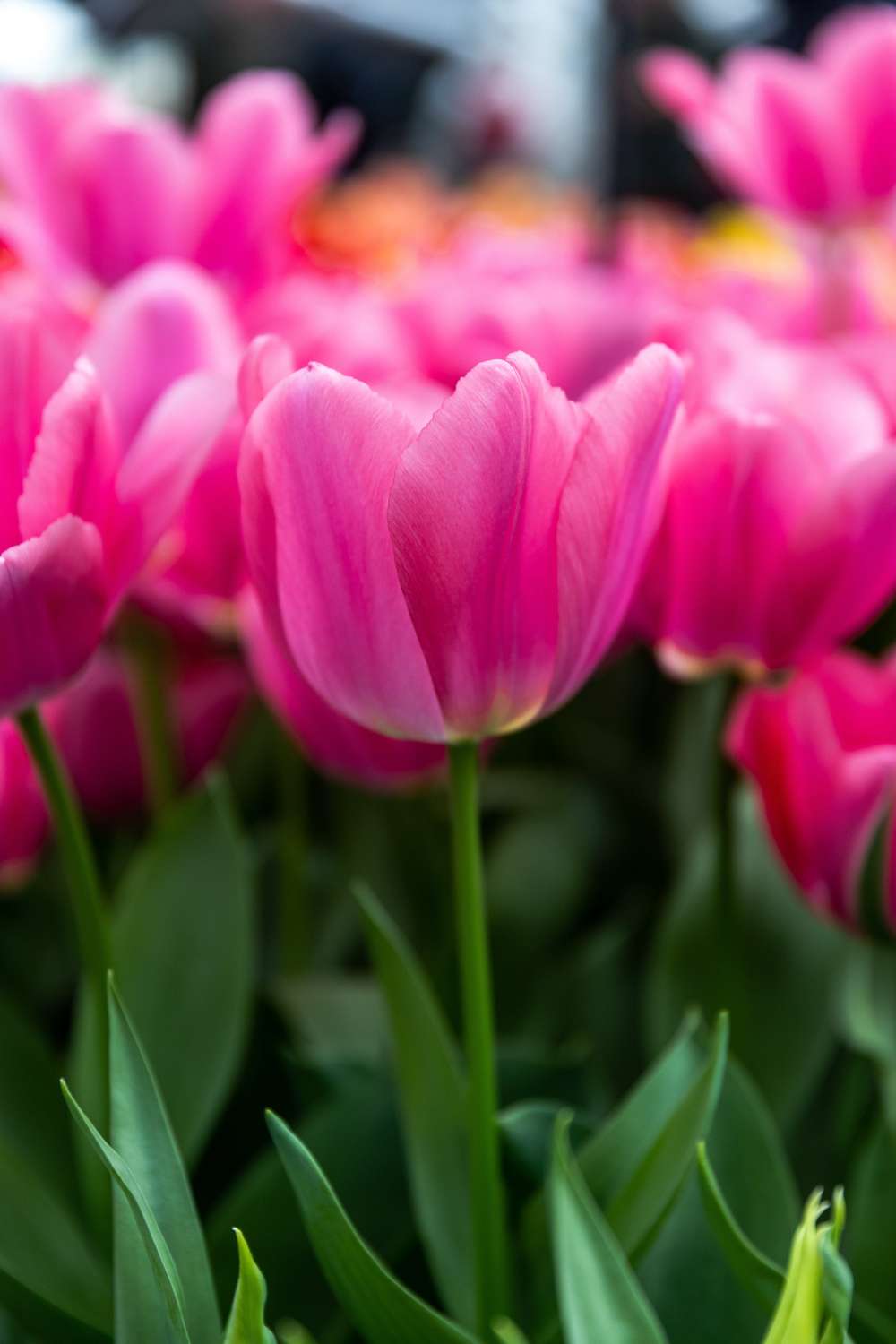 Tulipan 'Big Love' er en imponerende Darwin-hybrid, der kombinerer klassisk elegance med moderne farvepragt. Dens store, bægerformede blomster åbner i en dyb rosa nuance med et subtilt lilla skær, hvilket skaber et levende og sofistikeret udtryk. Indersiden af blomsten afslører et hjerte i hvidt og gult, ofte med blågrå flammer, der tilføjer dybde og karakter til hver enkelt blomst.