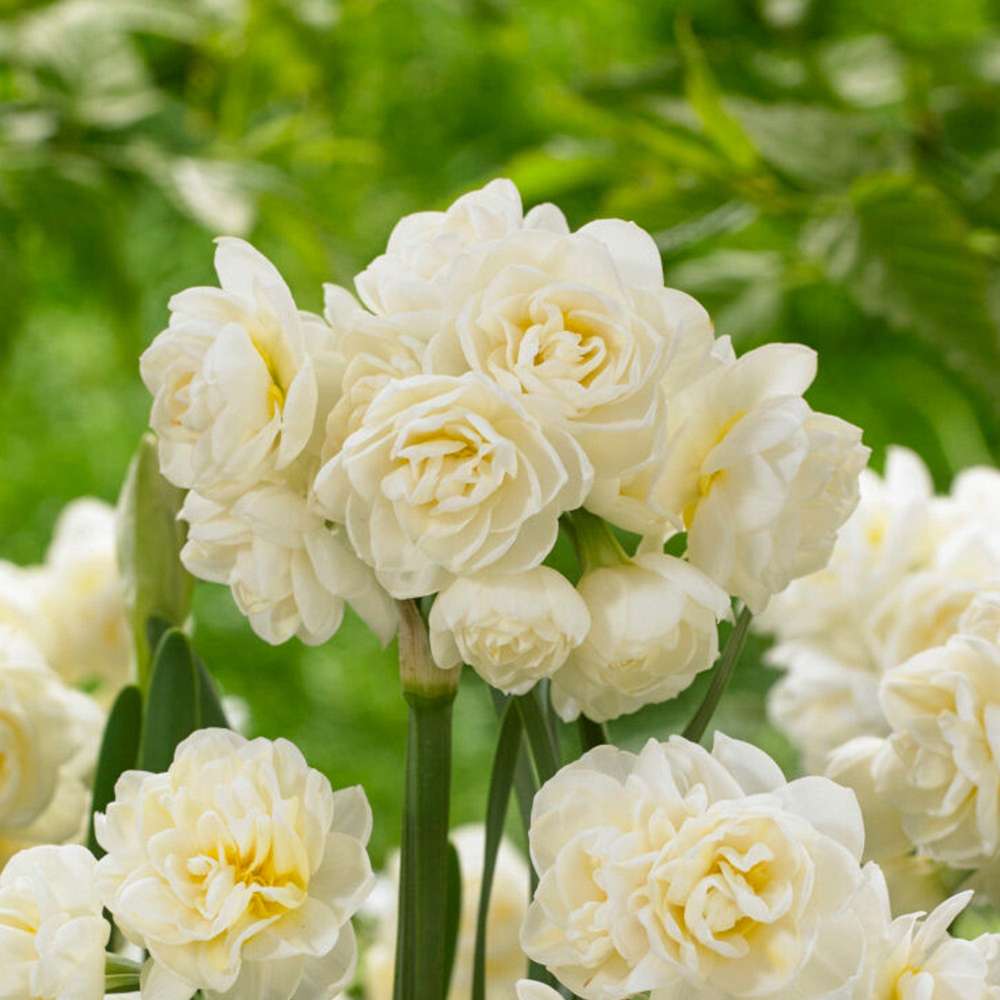 Ønsker du en anderledes narcissus i haven? Så er 'Erlicheer' et rigtig godt valg. En overdådig og forførende narcis, der bringer vintage-elegance og en intens duft til forårshaven. Hver stilk bærer en tæt buket af små, fyldte blomster i cremet hvid med et let gyldent skær i centrum.