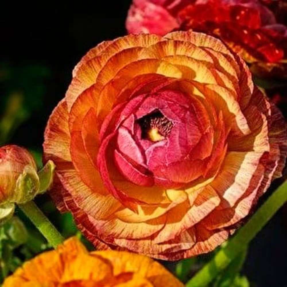 Kronbladene på disse smukke brune ranunkler har pænt flæsede kanter. De store, dobbelte blomster kommer i mange smukke nuancer af orange, guld, bronze, terracotta, kaffe og chokolade.