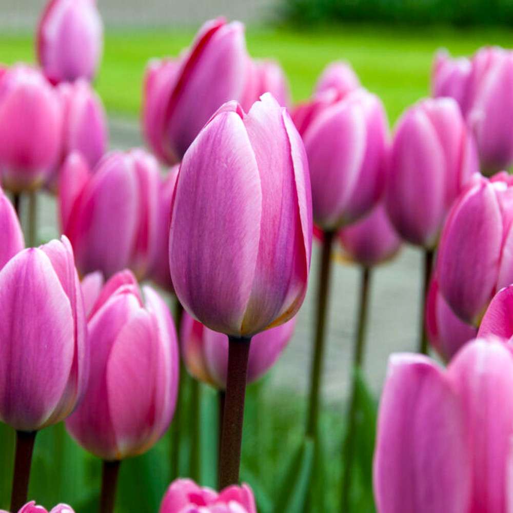 Tulipan 'Light and Dreamy' lever fuldt op til sit navn med sit drømmende udtryk og elegante farvespil. Den blomstrer i maj-juni med klassisk formede blomster i bløde lavendelrosa nuancer, der gradvist lysner mod kronbladenes kant. Den varme, silkematte farve balanceres smukt af de mørke stilke – næsten bordeaux i tonen – som giver planten et let dramatisk og moderne modspil.